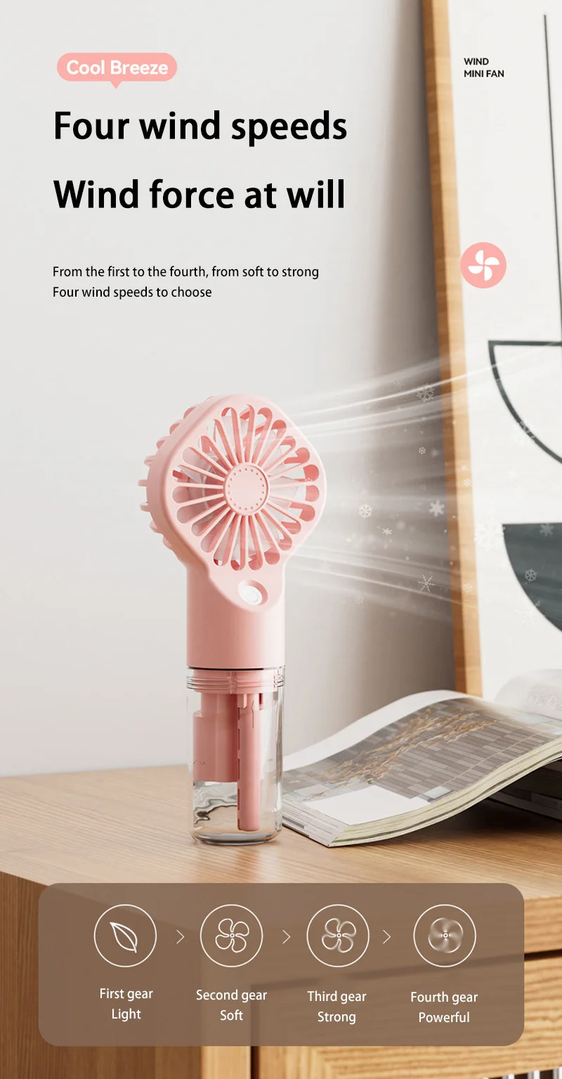 Handheld Mist Fan Portable USB Rechargeable Fan Four-Speed Wind Humidification Spray Hydration Face Steamer Outdoor And Travel